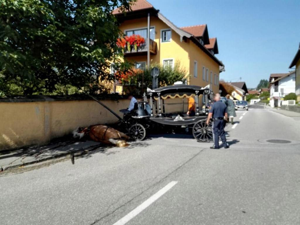 Mitsamt dem Fuhrwerk rannten die Pferde ein paar Hundert Meter die Straße hinab. An einer T-förmigen Kreuzung prallten sie ungebremst gegen eine Hausmauer und dürften sofort tot gewesen sein. Ein verständigter Tierarzt konnte nur mehr den Tod feststellen. Der Kreuzungsbereich musste für etwa eineinhalb Stunden gesperrt werden.