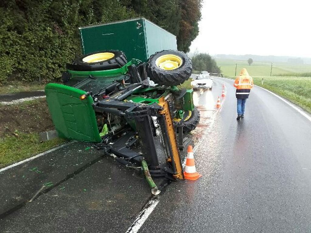 Ein 53-Jähriger aus Gampern fuhr am 19. September 2016 gegen 16:40 Uhr mit seinem Traktor auf der Attergau-Landesstraße und zog damit, einen nicht zum Verkehr zugelassenen WC-Anhänger. Er war mit dem Gespann Richtung St. Georgen im Attergau unterwegs.
