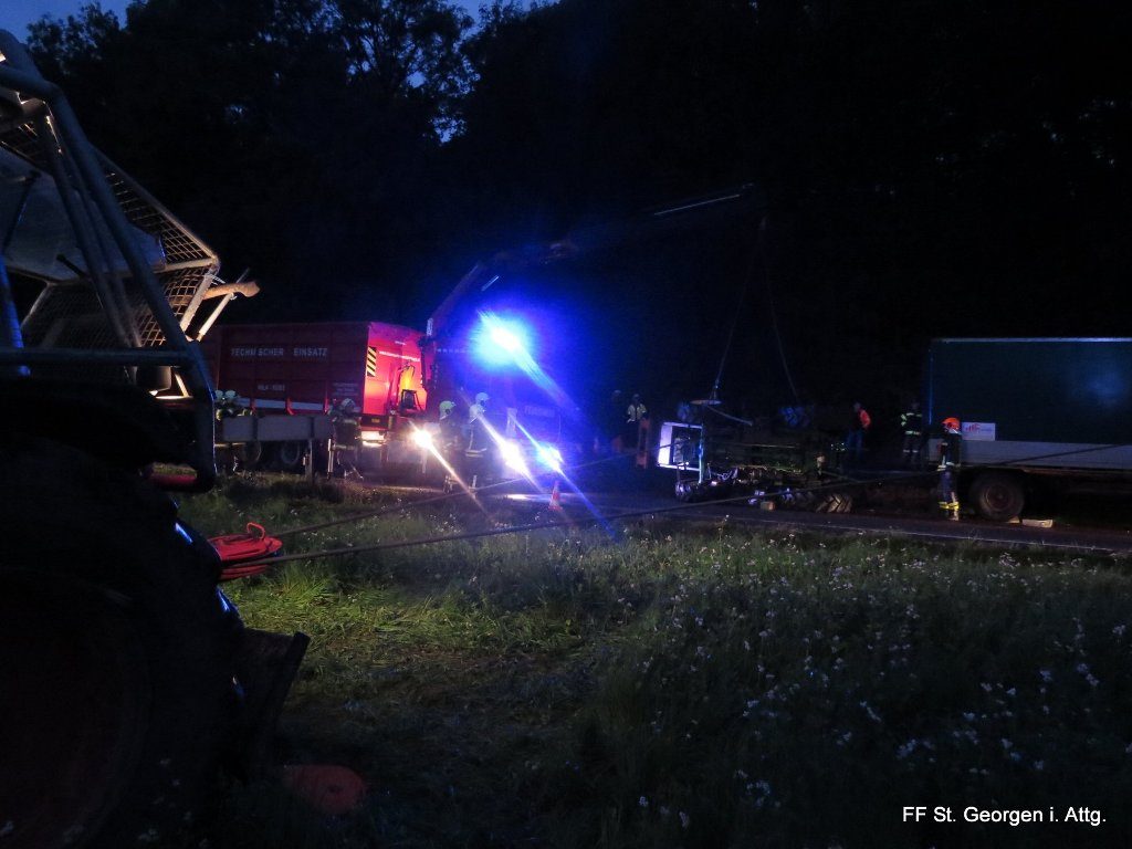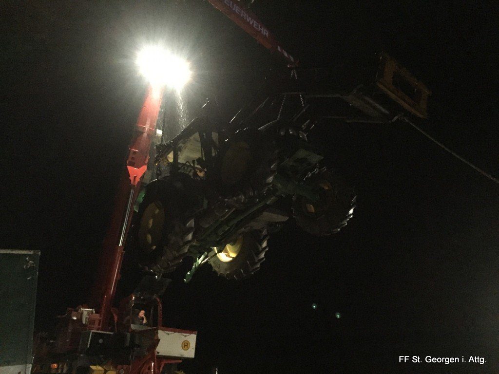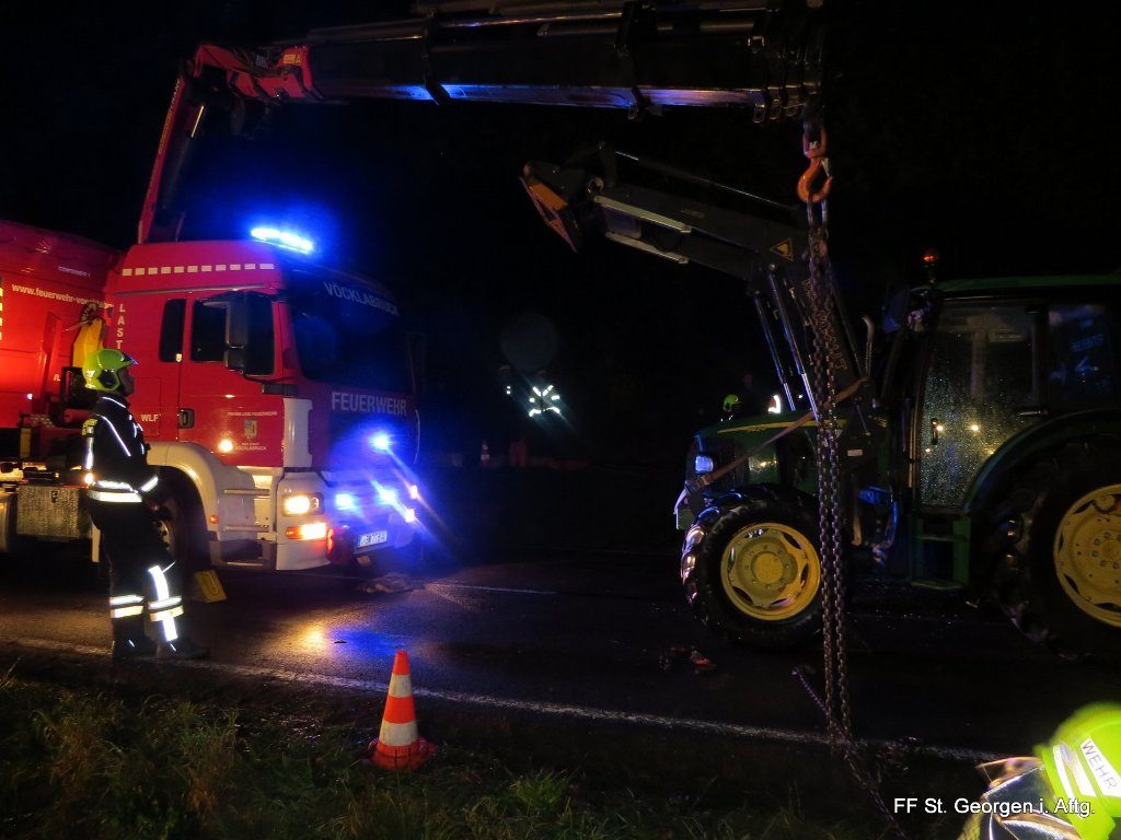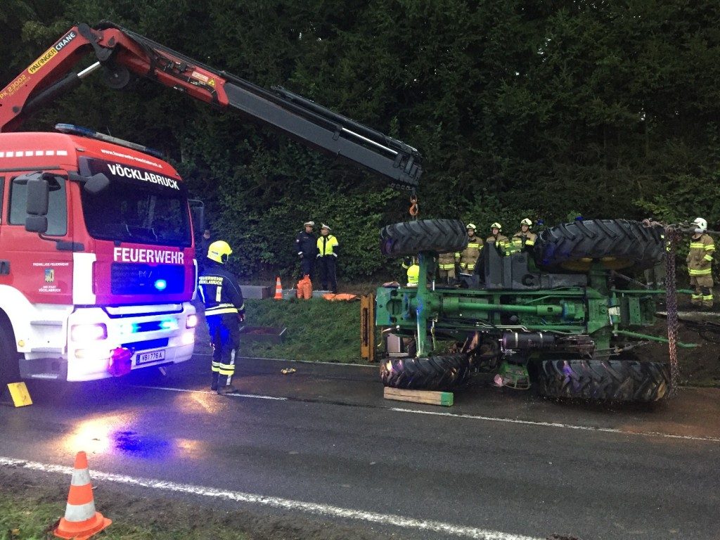 Die Bergung des Traktors sowie des WC- Anhängers gestaltete sich äußerst schwierig. Es mussten zwei Feuerwehrkrane der FF Vöcklabruck sowie zwei weitere Traktoren angefordert werden. Die L 540 war für mehr als vier Stunden total gesperrt. Ein durchgeführter Alkotest verlief negativ.