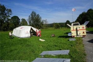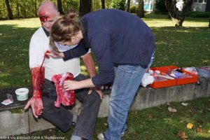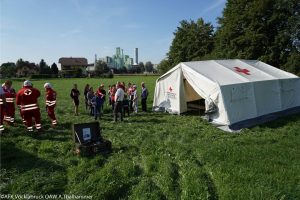 Auf den Verschubgeleisen der Energie AG wurde ein Zugsunglück simuliert. Das Szenario stellte einen Zusammenstoß eines Güterzugs mit einem Personenzug dar, die Oberleitung ist gerissen und hängt zu Boden, Rauchentwicklung im Bereich des Triebwagen und eine nicht bekannte Zahl an verletzten Personen.