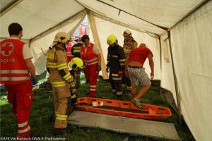 Etwa nach 1,5 Stunden wurde die Übung beendet und die Übungsnachbesprechung erfolgte im Anschluss im Feuerwehrhaus Timelkam. Von den Übungsbeobachtern und Verantwortlichen der Einsatzorganisationen kamen viele positive Rückmeldungen zum Ablauf der Übung und auch Vorschläge, um ein so großes Unfallszenario noch etwas besser abwickeln zu können. Danach gab es noch einen gemütlichen Ausklang (mit Speis und Trank).
