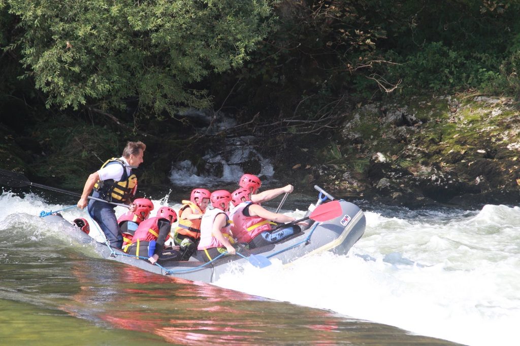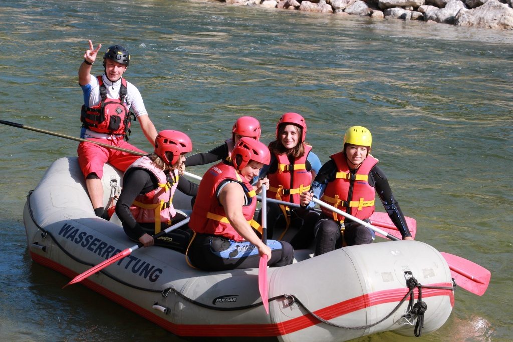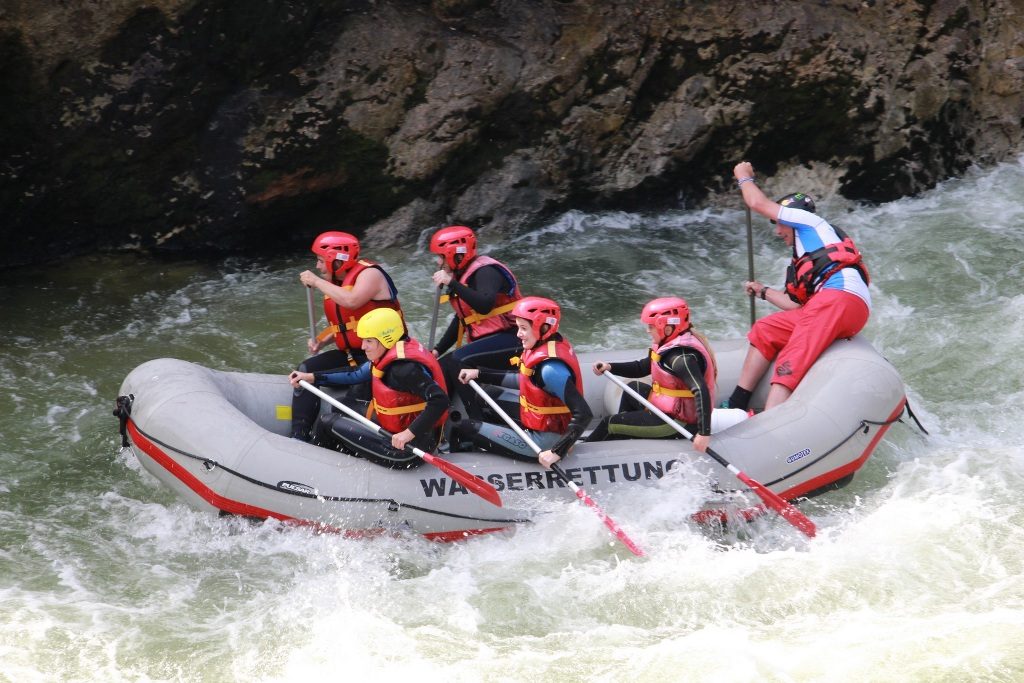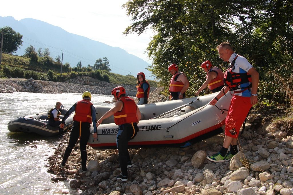 Mit den WildwasserretterInnen der Goiserer Wasserrettung konnten die besonders Abendteuerlustigen die Traun von Bad Goisern aus flussabwärts mit einem Raft befahren. Ein weitere Programmpunkt war der Besuch der Baustelle des neuen Sicherheitszentrums in Bad Goisern.