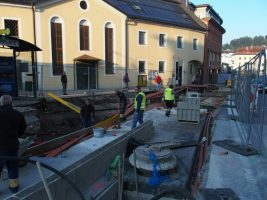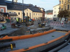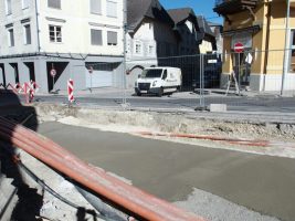 Im Bereich Klosterplatz/Georgstraße konnte schon die Grundplatte betoniert und zum Ende der Woche auch bereits die Schwingungsmessung mit dem Simulations-LKW „MoSeS“ durchgeführt werden.