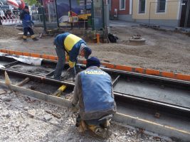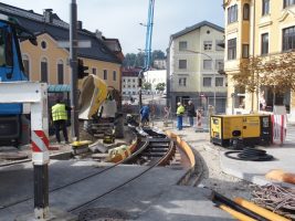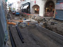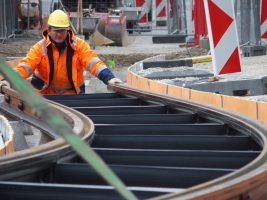 Es geht sichtbar voran auf unserer Baustelle! Gleich zu Beginn der Woche kam als Meilenstein die Gleislieferung für den Abschnitt Klosterplatz/Georgstraße. Im Anschluss wurden die neuen Schienen natürlich auch gleich präzise plaziert, überprüft, verschweisst, nochmals abgenommen und dann konnte am Ende der Woche auch schon betoniert werden.