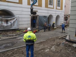 Apropos Brücke: Es wurden bereits die Baucontainer für die Brückenarbeiter angeliefert, die ihren Platz Seite an Seite zum Kammerhofmuseum fanden. Bald wird es auch hier einiges zu sehen geben…