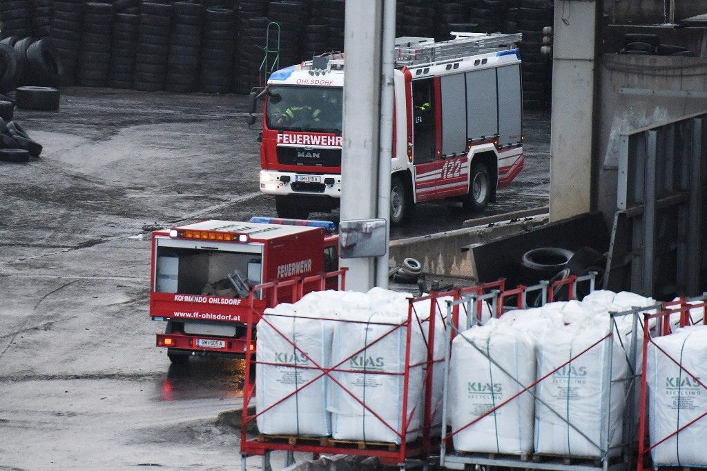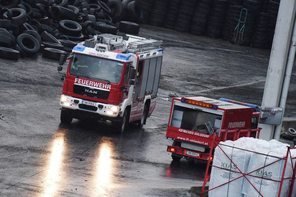 Nach dem Großbrand vorletzten Sonntag wurden heute erneut zehn Feuerwehren zu einem Großeinsatz bei der Reifenverwertungsfirma KIAS-Recycling in Ohlsdorf gerufen.
