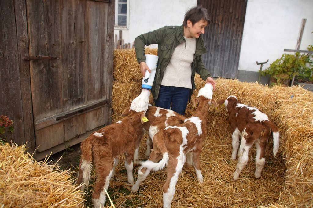 Evita, Evina, Evarista und Evangelia, so die Namen der Kälber, wogen bei der Geburt gerade mal 25 Kg, knapp die Hälfte des Normalgewichts. Schon kurz nach der Geburt standen sie aber bald schon mit wackeligen Beinen neben der Mutterkuh und waren nach ersten Untersuchungen pumperlgesund!“, so die glückliche Bäuerin Erika Schögl im Gespräch.