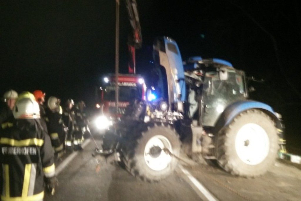 Ein 29-Jähriger aus Köstendorf und ein 17-Jähriger aus Lengau waren am 18. November mit einem Traktor auf der B154, der Mondseestraße unterwegs. Gegen 23:20 Uhr kam der 29-jährige Lenker in Oberhofen am Irrsee rechts von der Fahrbahn ab, wobei der schwere Traktor über eine Böschung stürzte. Beide Insassen konnten sich aus dem Fahrzeug befreien.