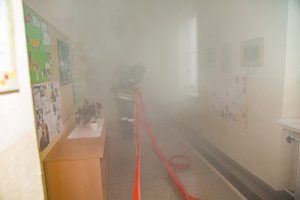 Hierzu wurde ein Brand im 1. Stock des Volksschulgebäudes angenommen, der es zwei Klassen nicht mehr erlaubte den Fluchtweg durch das Stiegenhaus aus dem Gebäude zu nehmen. Deshalb wurde die FF Attnang-Puchheim zusätzlich zu den ortseigenen drei Feuerwehren alarmiert.