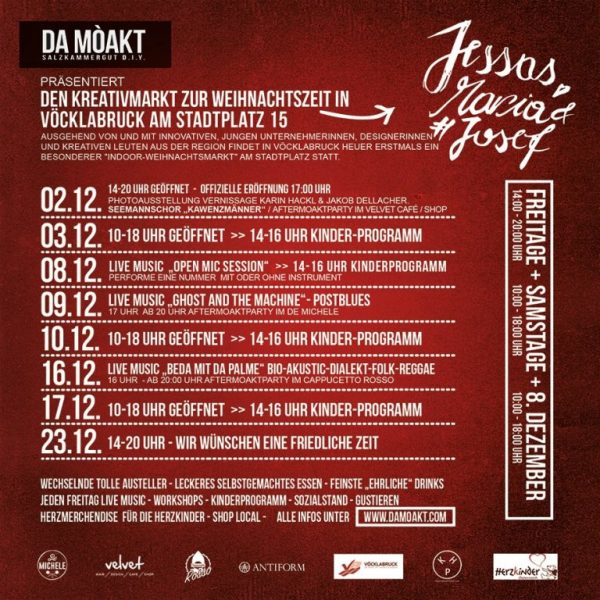 Da Mòakt Salzkammergut D.I.Y. präsentiert: „Jessas, Maria & #Josef – Ein Weihnachtsmarkt“