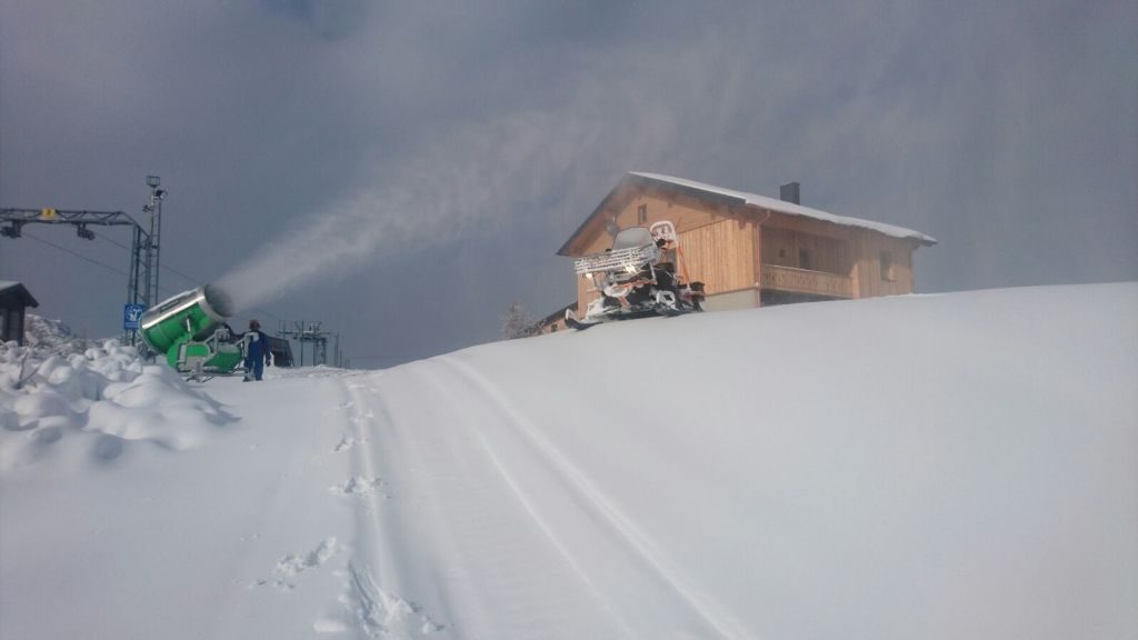 Völlig irre Geld- und Energieverschwendung! Saisonstart in über einem Monat (wie kann man jetzt das Datum festlegen? Woher weiß man, daß am 17.12. ausreichend Schnee liegt?) und jetzt wird bereits beschneit – ein kleiner Föhneinbruch im Dezember und der gesamte Kunstschnee rinnt im wahrsten Sinne des Wortes den Bach hinunter.