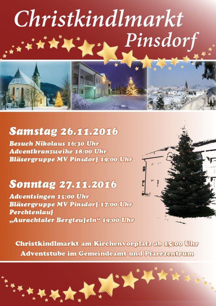 Am Samstag, den 26.11.2016 und Sonntag den 27.11.2016 ab 15:00 Uhr findet wieder traditionell der Pinsdorfer Christkindlmarkt am Platz zwischen Gemeindeamt und der Kirchen statt.