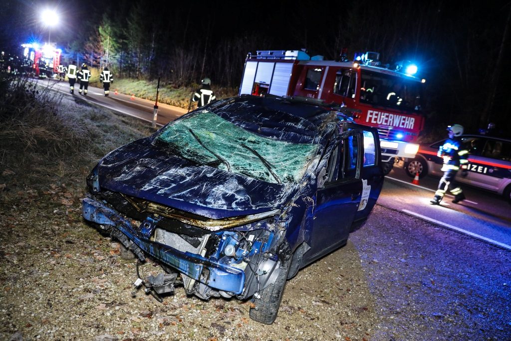Ein 23-Jähriger aus Bad Goisern lenkte am 5. November 2016 gegen 4:15 Uhr seinen Pkw auf der L549 vom Bereich Almsee Richtung Grünau. Nach einer starken Linkskurve kam er aus bislang unbekannten Gründen mit seinem Fahrzeug rechts von der trockenen Fahrbahn ab. Das Auto fuhr etwa 30 Meter im Straßengraben und kollidierte anschließend frontal mit einem Wurzelstock. Durch die Wucht des Zusammenstoßes überschlug sich das Fahrzeug und kam nach weiteren etwa 30 Metern im Bereich des rechten Straßenbankettes auf dem Fahrzeugdach zum Liegen. Der Lenker wurde unbestimmten Grades verletzt und von der Rettung in das Krankenhaus Bad Ischl gebracht. Ein durchgeführter Alkotest ergab einen Wert von 1,24‰. Der Führerschein wurde abgenommen.