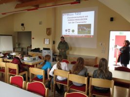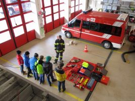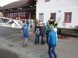 Mit etwas Verspätung konnte Feuerwehrkommandant HBI Ing. Florian Huemer alle Schüler und die Lehrkraft im Schulungsraum begrüßen. Nach einer kurzen Vorstellung der Feuerwehr Scharnstein wurden vier Gruppen gebildet, die jeweils bei 4 Stationen einen Themenschwerpunkt aus dem Feuerwehrwesen erlebten. Station 1 war Schwerpunkt Tanklöschfahrzeug, wo den wissbegierigen Schülern alles rund um das Thema Brand / Brandeinsatz erklärt wurde und auch selbst an den Geräten Hand angelegen konnten. Bei der Station 2 – Schwerpunkt Technischer Einsatz wurden alle Geräte zum Thema Verkehrsunfall präsentiert. Die Drehleiter, samt Einsatzzweck und Probefahrt galt es als Station 3 zu bewerkstelligen. Bei der 4. und letzten Station wurde zum Thema Waldbrand alle Ausrüstungsgegenstände und Hilfsmittel von Feuerwehr-Flughelfern präsentiert.