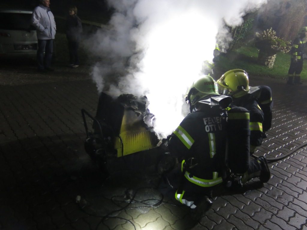 Durch das bedachte Handeln eines Bewohners, welcher den Reiniger aus der Werkstätte zog und erste Löschhilfe mit mehreren Feuerlöschern unternahm, konnte der Schaden enorm begrenzt werden. Als der Einsatz beendet war, rückten die Kaeraden wieder in das Feuerwehrhaus ein und der Abend klang bei Tee und Glühwein aus.
