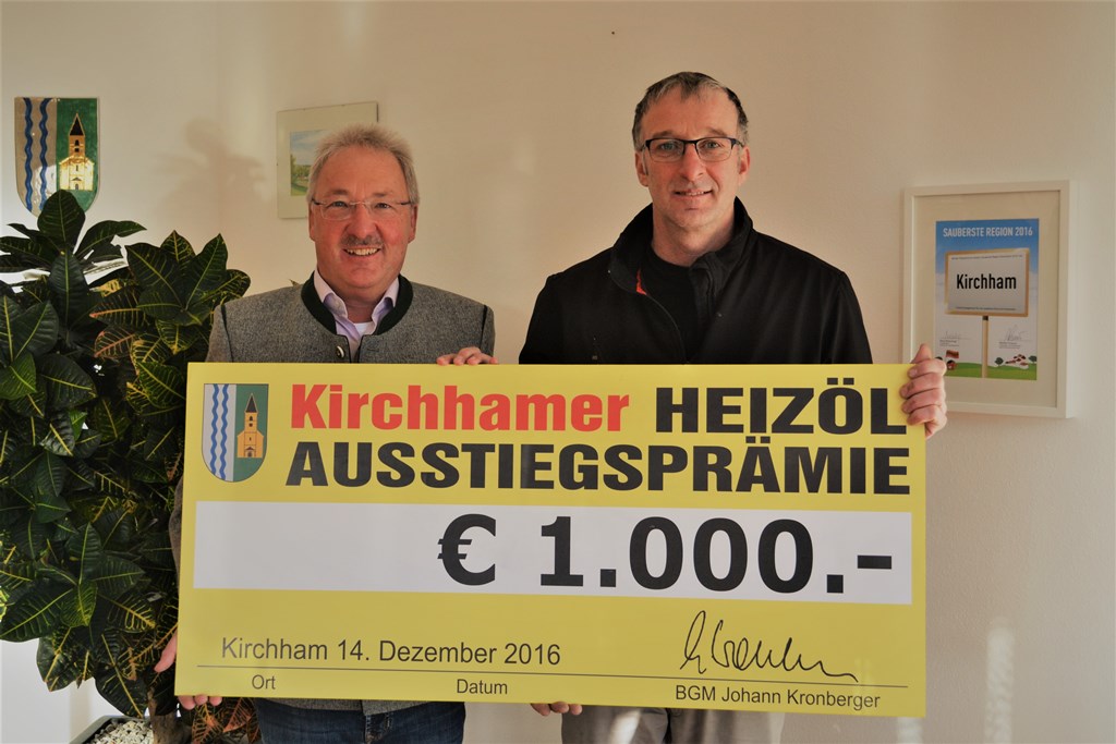 Die Gemeinde Kirchham hat sich in ihrem 2013 verabschiedeten Energiekonzept eingeschworenen, dass keine neuen Ölheizungen in Einfamilienhäusern und Wohnanlagen mehr installiert werden. Dies ist laut Bürgermeister Hans Kronberger tatsächlich gelungen. Jetzt wolle man mit der hohen Ausstiegsprämie den nächsten Schritt setzen, um die Gemeindebürger zum aktiven Ausstieg zu bewegen.