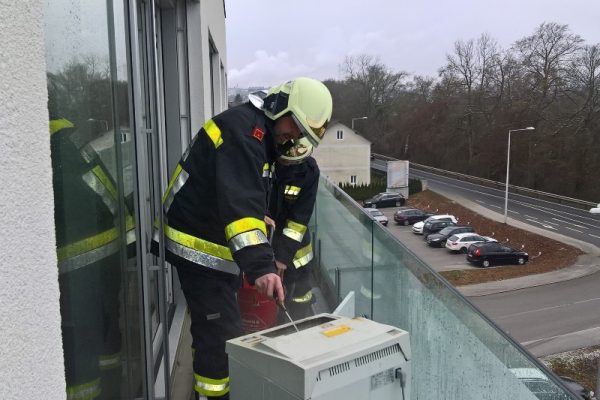 Die Einsatzmannschaft der Feuerwehr konnte den Brand im 3. Obergeschoss rasch lokalisieren und mit einem Kleinlöschgerät ablöschen. Der Brand blieb auf die Ausbruchsstelle beschränkt – der Schaden dürfte gering sein.