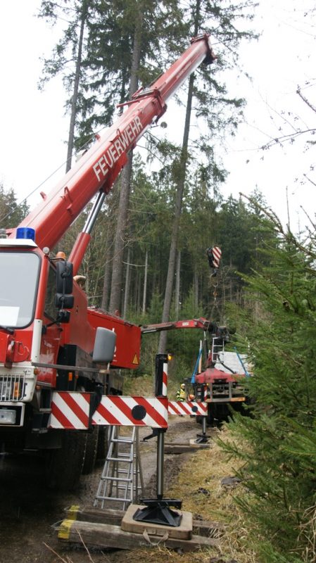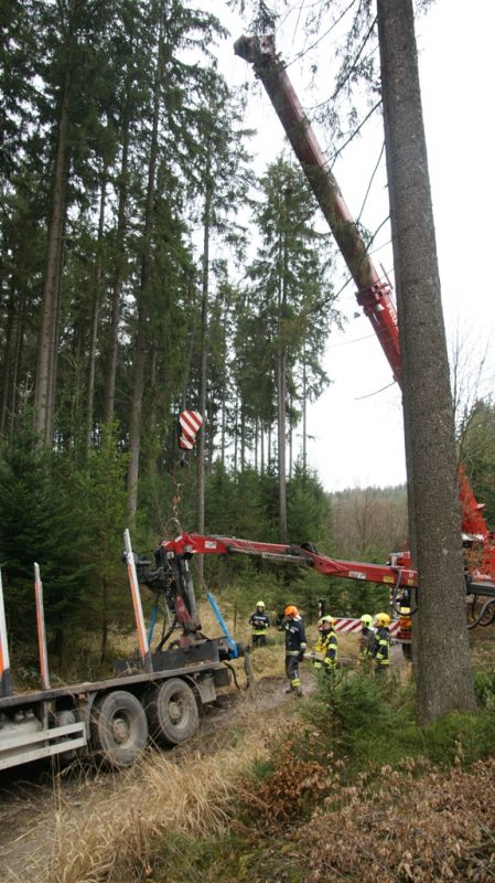 Da der Holztransporter mit einem normalen Feuerwehr LKW nicht herausgezogen werden konnte, wurde die Feuerwehr Vöcklabruck mit dem Kranfahrzeug zur Unterstützung angefordert. Der Transporter wurde geborgen und leicht beschädigt zurück auf die Straße gestellt. Der Einsatz war nach ca. 3 1/2 Stunden beendet.