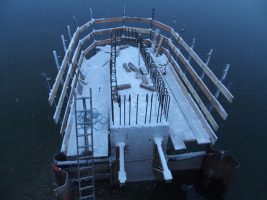 Ebenso fleißig wurde an der Schalung der Pfeilerköpfe gearbeitet – das Betonieren musste allerdings aufgrund der Eiseskälte noch aufgeschoben werden. Die Materialien sind eben manchmal temperaturempfindlicher als die Menschen… Unsere Hochachtung gilt den Männern, die hier Tag für Tag der Kälte trotzen um für uns zu bauen!