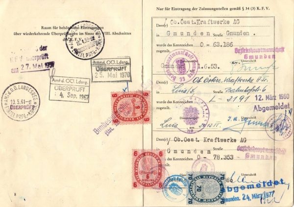 Der Bulli vom Standort Gmunden wurde in seiner OKA-Zeit zwischen 1953 und 1977 aus organisatorischen Gründen gleich mehrmals an- und umgemeldet. Je nachdem, wo gerade die zentrale Verwaltungsstelle für die Fahrzeuge des Unternehmens angesiedelt war, fuhr der OKA-Bulli teils mit Kennzeichnen aus Linz oder Gmunden. Nach dem Ausscheiden aus der Betriebsfeuerwehr wurde der Kastenwagen erst nach Pinsdorf und später weiter nach St. Gilgen verkauft. Im Anschluss daran hat sich die Spur verloren.