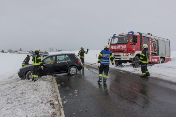 Die Feuerwehr sperrte die Landesstraße kurzfristig während der Bergungsarbeiten. Mit Hilfe der Seilwinde wurde das Fahrzeug rasch geborgen. Am Fahrzeug entstand kein Sachschaden. Nach der Freigabe der Straße war der Einsatz für die 15 Kameraden mit 2 Fahrzeugen beendet, berichtet die Feuerwehr.