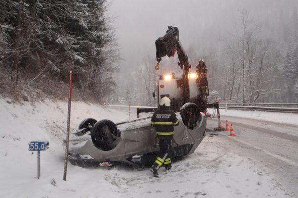 Heute Mittag wurde die Feuerwehr Bad Ischl zu einer Fahrzeugbergung auf die B145 in der sogenannten Kalkwerkskurve alarmiert. Ein Fahrzeuglenker kam mit seinem Fahrzeug aus bisher unbekannter Ursache von der Fahrbahn ab, und überschlug sich dabei. Mit einem Feuerwehrkran wurde das Fahrzeug wieder auf alle vier Räder gestellt. Im Einsatz standen 10 Mann der Feuerwehr Bad Ischl