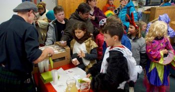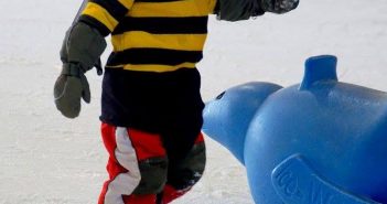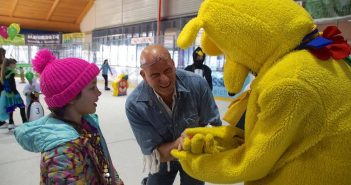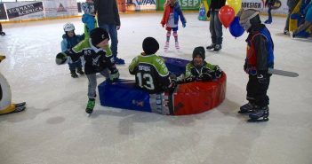 Mit schwungvoller Musik wurde Eisgelaufen was das Zeug hielt. Ein Teil der Eisfläche war für kleinere Clowns, Hexen, Feen, Geister und Käfer gesperrt. Dort fand man auch einen riesengroßen gelben Haribobär, der fleißig Zuckerl verteilte und mit den Kids in Schlangenlinie eine Polonäse durch die Eishalle führte. Zum Verschnaufen kam das große Kuscheltier nicht. Drinnen steckte Martin SCHIER, Nachwuchsbetreuer der TRAUNSEE-SHARKS Junior.