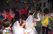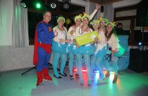 Um Mitternacht war es dann so weit: die große Maskenprämierung mit schönen Sachpreisen wurde von Mike UHL ausgerufen. Die Spannung war groß, schließlich belegte die Gruppe „OBI Markt“ Platz 3, die Riesen Gruppe „Hochzeitspoltern“ Platz 2 und die Gruppe „Brausetassen“ konnten erfolgreich den Titel des Vorjahres verteidigen und wurden wieder Erster. Das wurde natürlich dann nochmals ausgiebiger gefeiert! Die Partie ging flott weiter bis ???????? Aber das ist eine andere Geschichte!
