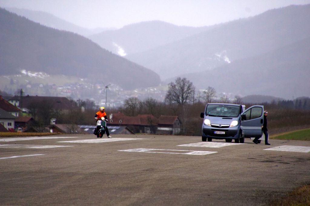 Nach 23 Jahren Training und Erfahrung, versuchte sich der VESPA STUNTFAHRER aus Steyr am Mittwoch, dem 22.2.2017 am Rollfeld des Flugplatzes Gschwandt in einem neuen Weltrekord. Das Ziel – der längste, freihändige VESPA WHEELY, einem sogenannten „NO HAND WHEELY“. Die Spannung war natürlich bei allen Anwesenden zum „Zerreissen“ groß.