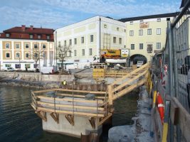 Die Passage bei Trachten Reingruber ist schon zu großen Teilen gepflastert und wirkt bereits jetzt sehr einladend. Für das Laienauge nicht ganz so spektakulär, aber trotzdem von großer Bedeutung sind auch, wie bei jedem Bauabschnitt, die Arbeiten an den Leitungen und für die Entwässerung, die natürlich auch im Bereich Schiffslände erfolgen.