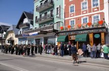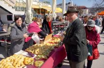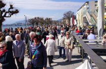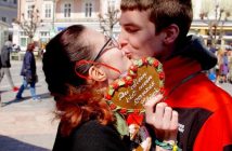Damit niemand zur kurz kam, hatten die Bäckermeister von Gmunden ca 20.000 Lebkuchenherzen in den letzten Wochen gefertigt und die fanden natürlich reißenden Absatz. Zu flotten Weisen der Stadtkapelle Gmunden, die am Rathausplatz und entlang der Esplanade flott aufspielte, wurden eifrig Herzen verschenkt, die Liebe abgestattet und natürlich auch fleißig „Busserl“ ausgeteilt.