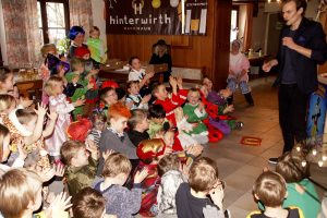 Das Organisationsteam um Anita Gruber hat wieder ganze Arbeit geleistet und verschiedene Spiel,- und Bastelstationen aufgebaut. Jedes Kind bekam einen Spielepass, der abgestempelt wurde und mit dem es dann einen leckeren Faschingkrapfen der Bäckerei Hinterwirth gab. Als besonderes Highlight trat um 16:00 Uhr der Zauberkünstler Florian Granzner aus Laakirchen auf, der die Kinder wirklich bezaubert hat. Die Kids durften dabei als Assistenten mitwirken und waren hell auf begeistert.