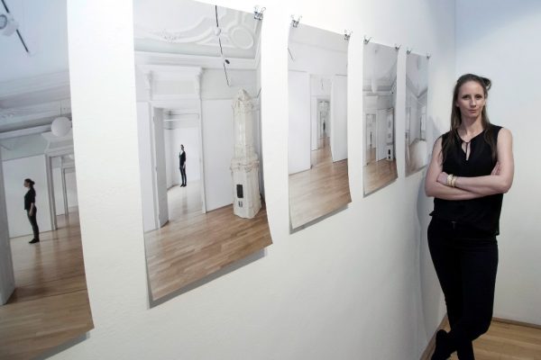 In der Ausstellung begegnet man der Leere und Stille verlassener Orte. Die Räume in Katharina Achts Fotografien sind menschenleer, nur sie selbst betritt die Örtlichkeit.