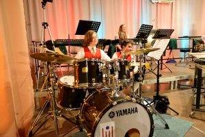 Ein weiteres Konzerthighlight war zweifellos das Solowerk für Schlagzeug „Music for Drums“. Die jüngste Schlagzeugerin, Sophia Aitzetmüller, konnte mit diesem nicht ganz einfachen Schlagzeugsolo ihr Können unter Beweis stellen und einen Teil ihres Bronzenen Leistungsabzeichens absolvieren.