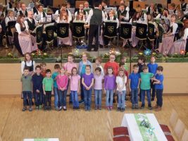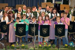 Der erste Teil des Konzertes war geprägt vom Jugendprojekt der Kapelle. Unter dem Titel „Frühlingsboten“ wurde in Kooperation mit dem Hort Bad Ischl (Leiterin Margit Eder) versucht, den Kindern die Freude an der Musik näherzubringen. Jeden Mittwoch verbrachten die Kinder im Probensaal Reiterndorf, lernten alle Instrumente der Kapelle kennen und durften diese auch ausprobieren. Unter der fachkundigen Leitung der Jugendbetreuerin Chrissi Gebhartl wurde mit Unterstützung von Viki Moser, Johanna Laimer und einiger weiterer Musikerinnen und Musikern drei Gesangstücke einstudiert, die im Rahmen des Frühlingskonzertes zum ersten Mal auf der großen Bühne präsentiert wurden. Bei acht Kindern war das Interesse so groß, dass gemeinsam mit Beate Graf in dieser kurzen Zeit immerhin drei Töne erlernt wurden, die von den Flötenkindern gleich mit 4 Stücken auf die Bühne gebracht wurden. Mit „Wer hat an der Uhr gedreht“ verabschiedeten sich die Kinder wieder und die Verantwortlichen hoffen, das Interesse an der Musik mit diesem einzigartigen Projekt geweckt zu haben.