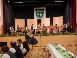 Der zweite Teil wurde vom Quartett Weißblech eröffnet, bevor die Sprecherin Diana Spitzer passend zu den einzelnen Stücken über das vergangene Musi-Jahr berichtete. Besonders hervorzuheben sind die beiden Solistinnen Lydia Panzl und Beate Graf, die mit dem Alt- und Tenorsaxophon-Duett „Down by the riverside“ überzeugen konnten sowie Jakob Bruckschlögl, dem der zweite Jugendbetreuer Georg Bruckschlögl zum mit ausgezeichnetem Erfolg abgelegten Jungmusikerleistungsabzeichen in Silber gratulierte. Aufmerksamen Zusehern fielen die neuen Dirndlschürzen der Musikerinnen auf, die bei dieser Veranstaltung Premiere hatten. Nach den Dankesworten von Obmann Klaus Wiesmayr an den Kapellmeister, die Musikerinnen und Musiker und die unzähligen helfenden Hände, die zum Gelingen der Veranstaltung beigetragen haben verabschiedete sich die OMK Mitterweißenbach mit zwei Zugaben von der Bühne und gab diese frei für den musikalischen Ausklang. Immerhin konnten dafür gleich zwei Gruppen, nämlich die HolzBlehSchuah-Musi und die Schneiderstub’n Musi gewonnen werden.
