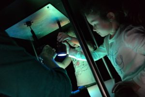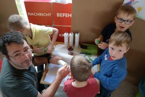 Selbstverständlich sind auch wieder bewährte Experimentierstationen in der mobilen Ausstellung mit dabei: So können Kinder zum Beispiel eine Kerze mit echten Werkzeugen drechseln oder mit Wasserkraft experimentieren. Erweitert wurde die Experimentierstation Energie & Assoziation, bei der durch das Treten eines kleinen Hometrainers Strom erzeugt wird, mit dem – ganz neu – die Zimmer eines Puppenhauses beleuchtet werden können, was zu Rollenspielen rund ums Thema Wohnen und Energie (sparen) einlädt.