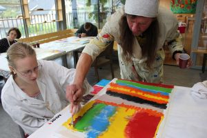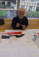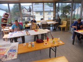In einem Gemeinschaftsprojekt mit dem Künstler B.S. Stucka malten die Klienten der Lebenshilfe-Werkstätte 20 Bilder. Diese werden beim Jubiläumsfest im Rahmen des „Lanzingtanzls“ für einen guten Zweck zum Kauf angeboten.