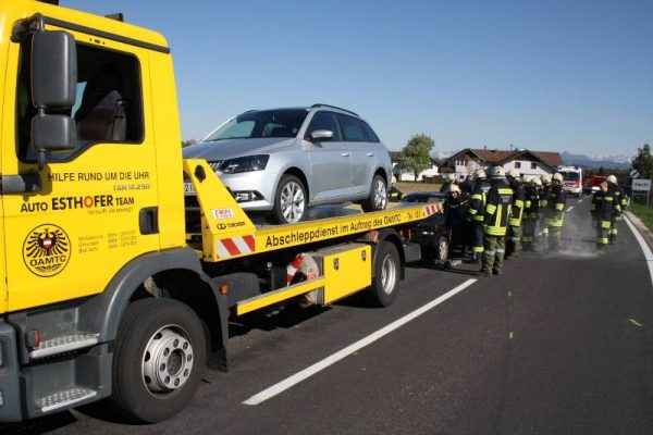 Das Fahrzeug wurde anschließend auf die Seite gedreht und ausgelaufene Betriebsmittel vom Boden entfernt, berichtet die Feuerwehr.