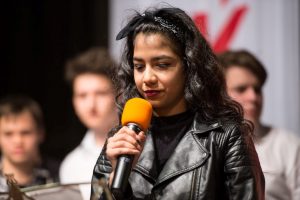 Auch andere Schulen hielten verschiedenste Präsentationen zum Thema ab, von einem Film über Hermann Langbein (ORG der Franziskanerinnen Vöcklabruck) über eine Powerpoint-Präsentation über den Widerstandskämpfer Otto Pensl (BS Steyr 1) und ein Interview des oben genannten Buchautors und der Buchautorin (HTBLA Perg) bis hin zu einem beeindruckenden Poetry Slam (Stiftsgymnasium Schlierbach). Auch die musikalische Begleitung durch SchülerInnen des BG/BRG Rohrbach trug sehr zu einer – trotz des schwierigen Themas – positiven Stimmung bei. Einen weiteren Höhepunkt der Veranstaltung bildete der Dialog mit Anna Hackl und Käthe Sasso, zwei Zeitzeuginnen, die aus ihrem Leben erzählten und Fragen der SchülerInnen beantworteten.