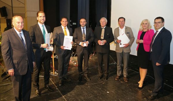 Neben den Familien der ausgezeichneten Traditionsbetriebe waren auch Bezirkshauptmann Dr. Martin Gschwandtner, Vöcklabrucks Bürgermeister Mag. Herbert Brunsteiner und zahlreiche Bürgermeisterinnen und Bürgermeister gekommen, Arbeitsinspektor Ing. Mag. Wolfgang Vogl, der Abteilungsleiter der Bezirksstellen der Wirtschaftskammer, Mario Pramberger MBA, gekommen, um die Betriebe zu ehren, sowie Direktor Dipl.-Ing. Wilhelm Prehofer als Direktor der HTL Vöcklabruck, deren Schüler und Lehrer die Trophäen zusammengebaut haben.