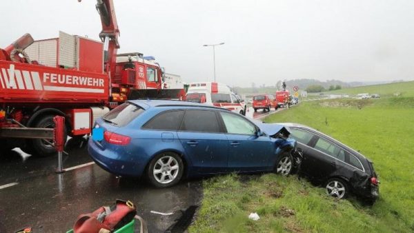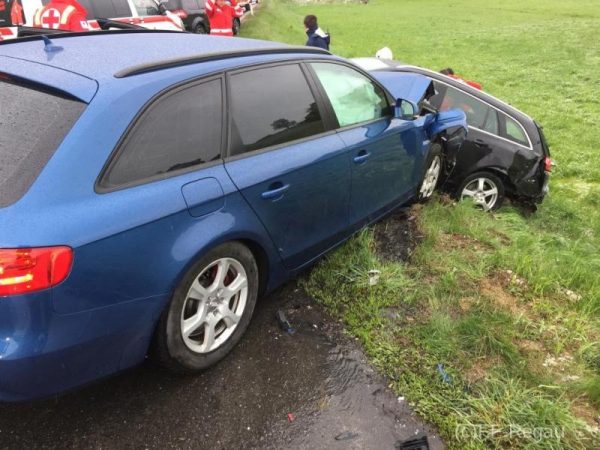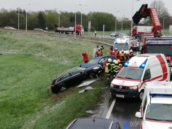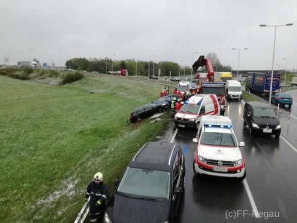 Zu einem Verkehrsunfall mit eingeklemmter Person wurde am 18.4.2017 die Feuerwehren Regau und Rutzenmoos gerufen. Im Bereich des Kreisverkehrs der Autobahnauffahrt Regau waren zwei Autos kollidiert.