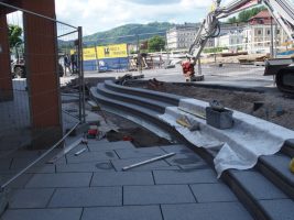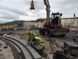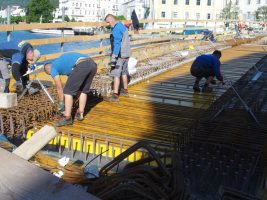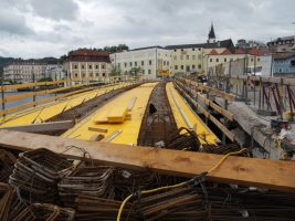 An der Schiffslände ging es mit den Stufen bei Trachten Reingruber weiter, auf der Brücke sind unter anderem die Eisenflechter munter am Werk und beim Trauntor wurden die Arbeiten unter dem nördlichen Bogen in Angriff genommen.