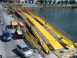 Strahlendblauer Himmel, leuchtendgelbe Brücke und braungebrannte Männer – so schauts aus bei uns! Die Baustelle zeigt sich also schon optisch von ihrer besten Seite und auch mit dem Arbeitsfortschritt können wir sehr zufrieden sein.