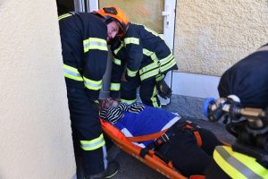 So die Übungsannahme der Feuerwehr Eben/Nachdemsee am 26.5.2017. Einsatzleiter HBI Klaus Leitner entscheidet sofort, die Kameraden der Feuerwehr Altmünster zu alarmieren. Der erste Atemschutztrupp begibt sich in den Keller um die bewusstlose Person zu retten. Erschwerend kam hinzu, dass der Mann sehr groß und schwer ist, wodurch der Einsatz mit der Schleifkorbtrage notwendig wurde.