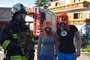 Eine schwierige Übung, da das Gelände rund ums Tierheim wenig Stellfläche für Fahrzeuge und Gerätschaften bietet. „Im Ernstfall rücken alle 4 Wehren der Gemeinde aus, da müssen wir großräumig sperren“ so Einsatzleiter HBI Klaus Leitner. Das Team vom Tierheim Altmünster stellte die „Opfer“ und waren mit viel Elan bei der Sache. Weiters ist zu erwähnen, dass bei dieser Übung keine Tiere miteinbezogen wurden, denn dies würde den Tieren unnötigen Stress bereiten.