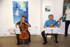 „Farbe ist Energie und meine Bilder sollen Kraft, Dynamik und Lebensfreude ausdrücken!“ so Christine PAHL´s Slogan zur Malerei. Und bei der Ansicht ihrer Werke spührt man förmlich diese Energie, Kraft und Dynamik. Die Eröffnung wurde von Clara STEINKOGLER auf dem Cello, begleitet von Vater Siegfried STEINKOGLER auf der Gitarre musikalisch umrahmt. Nach dem offiziellen Teil der Eröffnung gab es ein Buffet und reichlich Gelegenheit für Smalltalk mit der Künstlerin Christine PAHL .