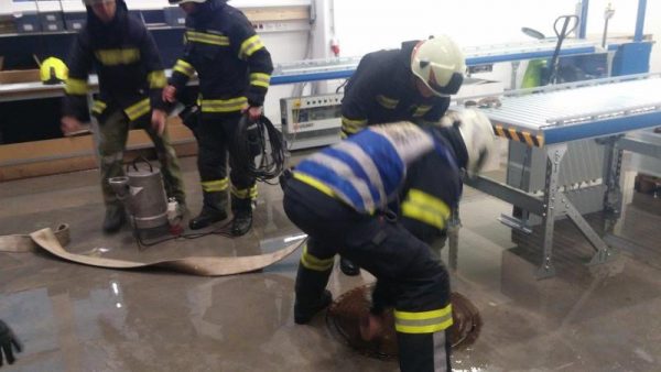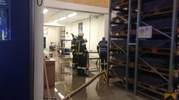 In einem Gewerbebetrieb stand eine Lagerhalle aufgrund der starken Regenfälle unter Wasser. Mit Unterstützung von zwei schweren Tauchpumpen wurde der Wasserstand im Sickerschacht gesenkt. Firmenmitarbeiter übernahmen mit einer Saug- und Reinigungsmaschine die restliche Reinigung der Halle. Danach wurde der Einsatz der FF Ohlsdorf beendet. Im Einsatz standen 20 Mann der FF Ohlsdorf.