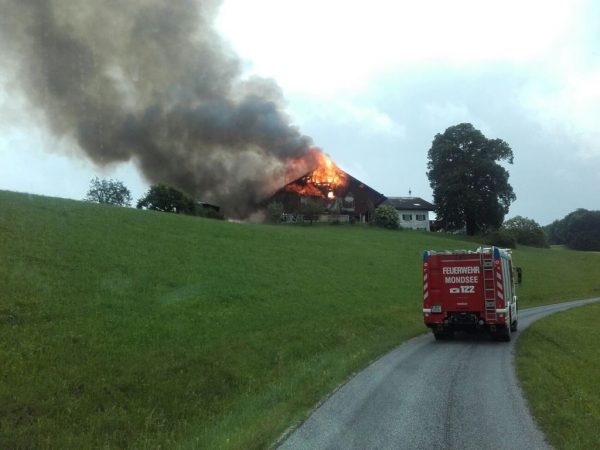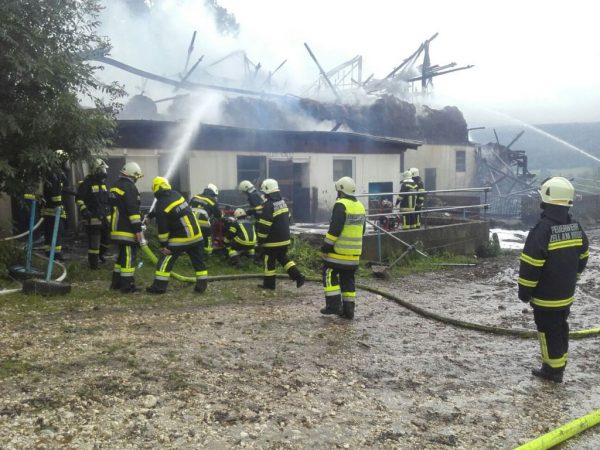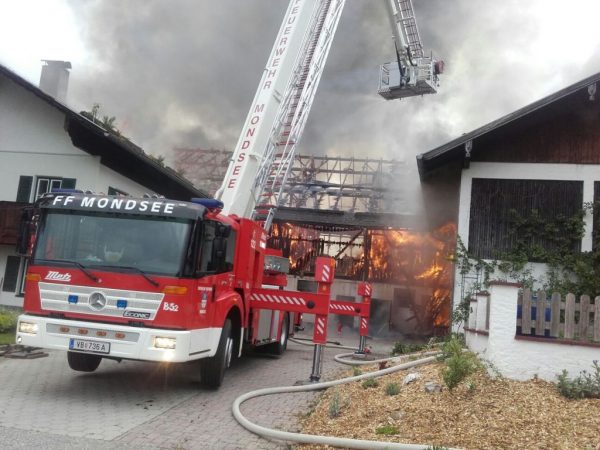 Aus bisher ungeklärter Ursache geriet am 6. Juni 2017 gegen 10:20 Uhr ein landwirtschaftlicher Betrieb in Oberhofen am Irrsee im Bereich der Futtermischanlage in Brand. Ein 36-jähriger Arbeiter versuchte zunächst noch das Feuer mit zwei Pulverlöschern zu löschen, was ihm jedoch nicht gelang. Trotz Großalarmierung brannte der Wirtschaftstrakt vollständig nieder. Der Wohntrakt konnte gerettet werden, wurde jedoch ebenfalls in Mitleidenschaft gezogen. Die 25 Kühe konnten noch rechtzeitig aus dem Stall befreit werden. Ein neugeborenes Kalb verendete allerdings in den Flammen, berichtet die Polizei.