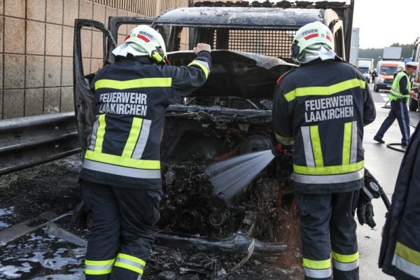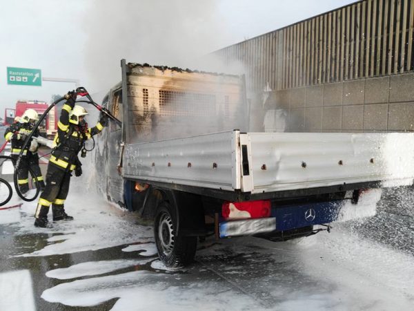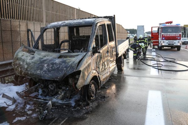 Eine größere Rauchsäule stand Donnerstagabend über der Westautobahn bei Laakirchen. Unmittelbar nach der Autobahnauffahrt Laakirchen-Ost, in Fahrtrichtung Wien, stand ein Pritschenwagen in Vollbrand. Die Insassen konnten sich rechtzeitig in Sicherheit bringen, bevor das Fahrzeug in Flammen aufging.